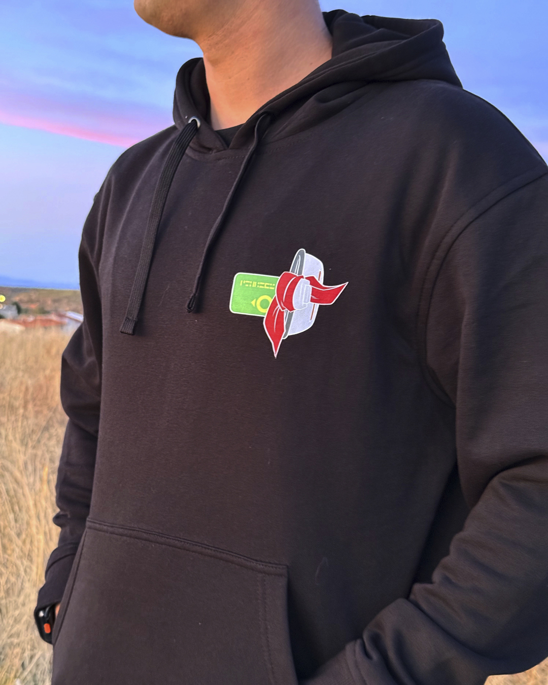 👉 En el pecho, un diseño sutil pero poderoso: un scouter con una bandana colgando, recordatorio de la herencia, la pérdida y la fuerza interior que nunca se apaga. Un guiño que solo los verdaderos entendidos sabrán reconocer.